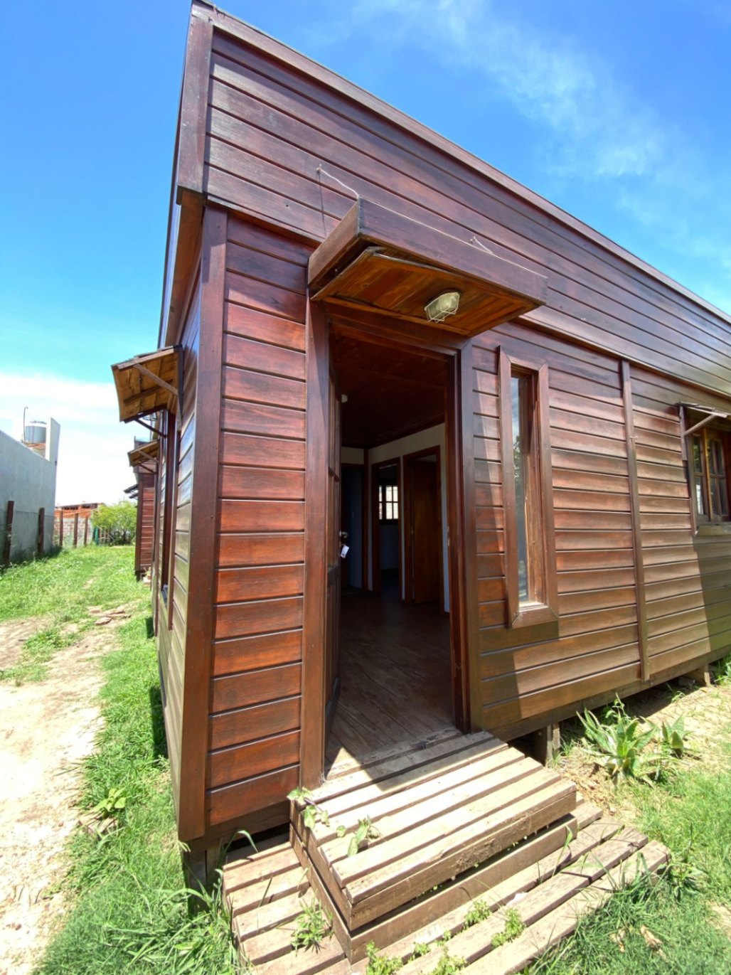 La casa se encuentra en una zona con acceso a servicios esenciales, como agua corriente y electricidad. Además, ofrece comodidades adicionales como placards en los dormitorios, un patio que brinda un espacio al aire libre, y un lavadero.
