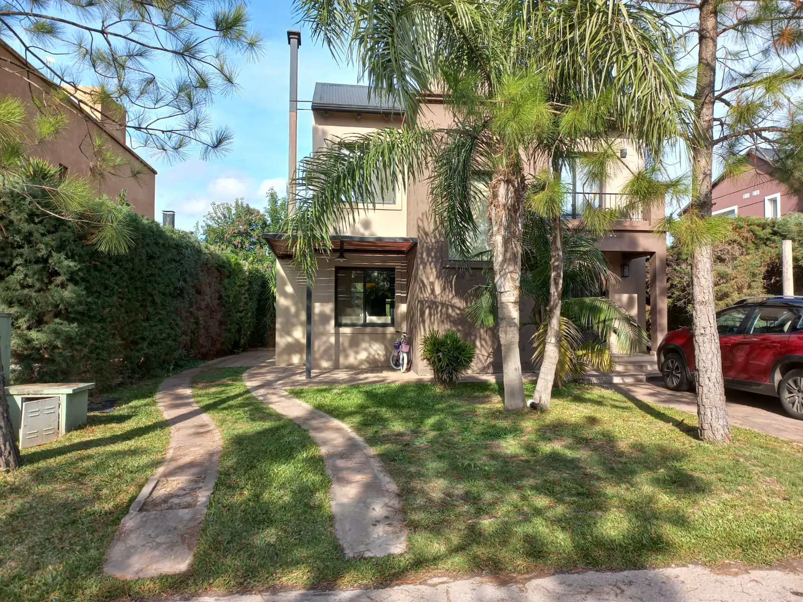 Se compone de tres dormitorios con placard, dos baños, patio con piscina y entrada para varios vehículos.